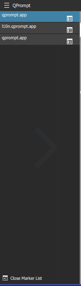 This opens a list of every Marker set in the currently open document. By clicking on one of the entries you directly jump to that part in the document. It can simply be closed by clicking on the icon again.