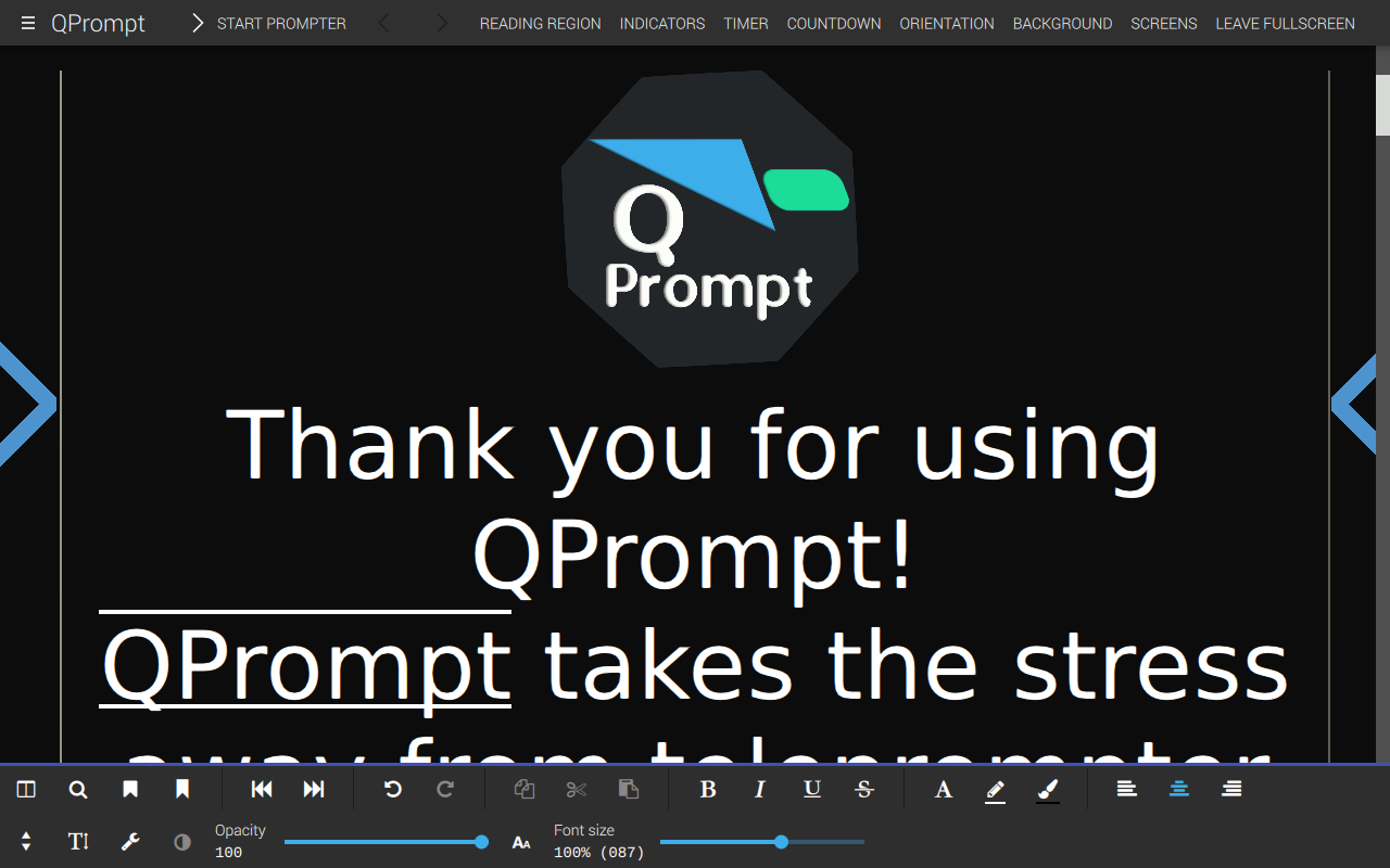 QPrompt, is teleprompter software for all video creators. It's built with productivity, ease of use, and smooth performance in mind.